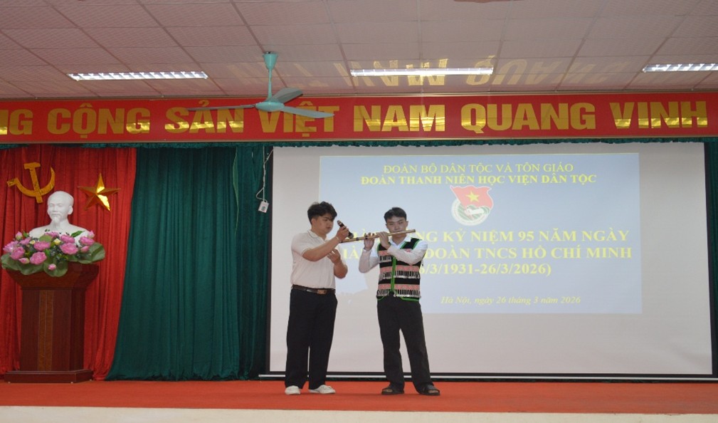 Thực hiện chỉ đạo của Đảng ủy và Ban Giám đốc Học viện Dân tộc (HVDT); ngày 26/3/2026, tại trụ sở HVDT, Ban Chấp hành Đoàn Thanh niên HVDT đã chủ trì, phối hợp với Phòng Đào tạo và Công tác sinh viên, cố vấn học tập các Khoa để tổ chức Chương trình văn nghệ và thể thao cho sinh viên, chào mừng kỷ niệm 95 năm ngày thành lập Đoàn TNCS Hồ Chí Minh. Các hoạt động được tổ chức nhằm giúp đoàn viên, thanh niên của HVDT hiểu sâu sắc về lịch sử vẻ vang, truyền thống hào hùng của Đoàn TNCS Hồ Chí Minh qua 95 năm cống hiến và trưởng thành; khẳng định vai trò xung kích, sáng tạo của tuổi trẻ Việt Nam trong xây dựng và bảo vệ Tổ quốc; qua đó thúc đẩy phong trào văn nghệ, thể thao cho sinh viên của HVDT, tạo sân chơi lành mạnh, bổ ích, thư giãn sau giờ học; đồng thời tìm kiếm những tài năng âm nhạc và thể thao, tạo cơ hội cho sinh viên các khóa giao lưu, học hỏi và tăng sự gắn kết giữa các Chi đoàn.