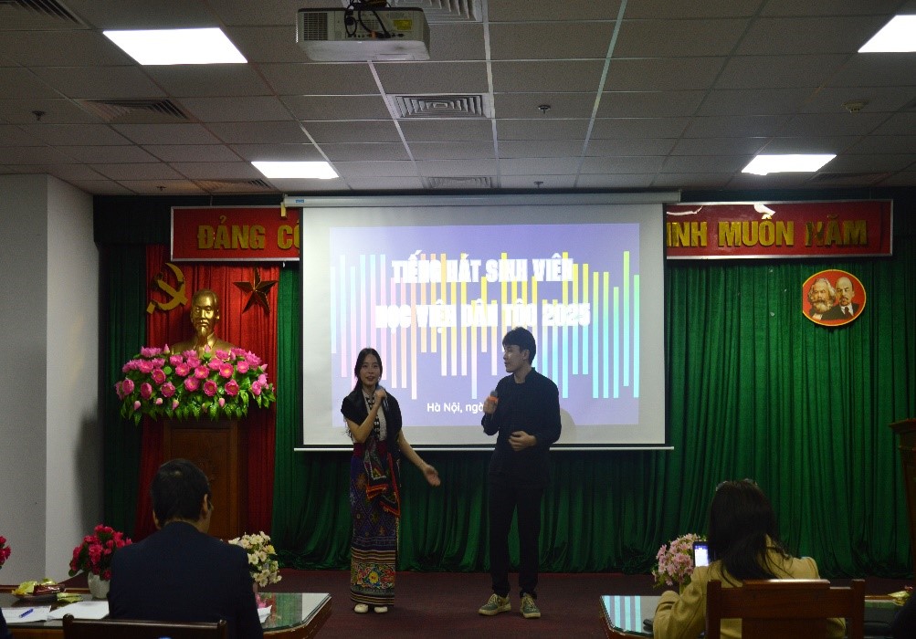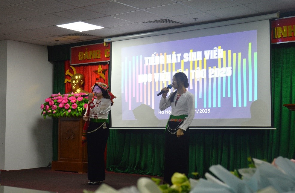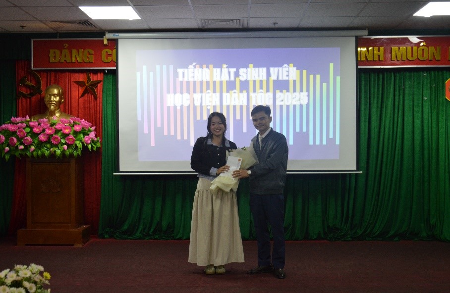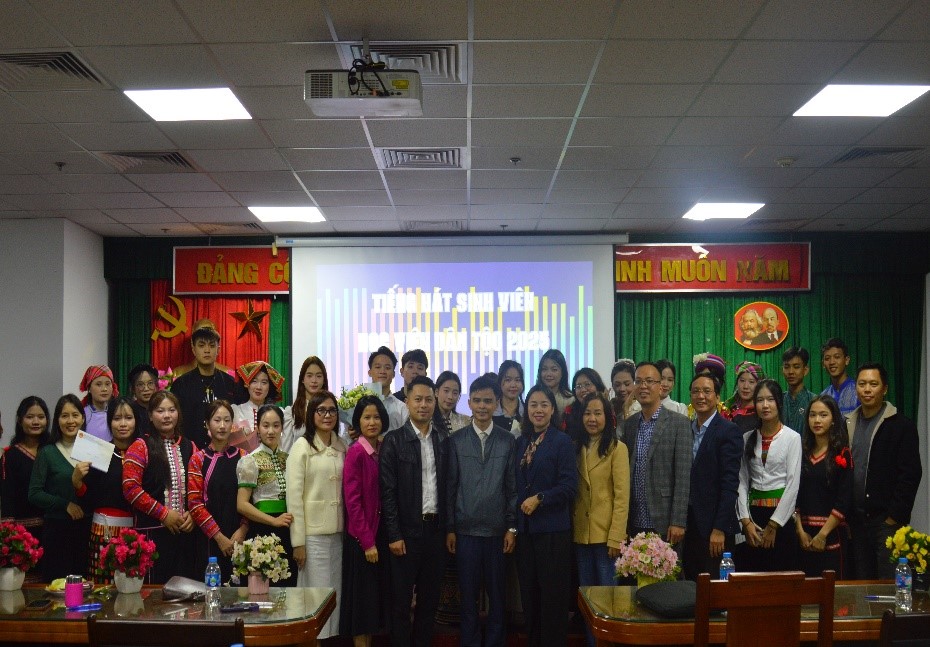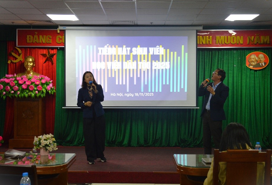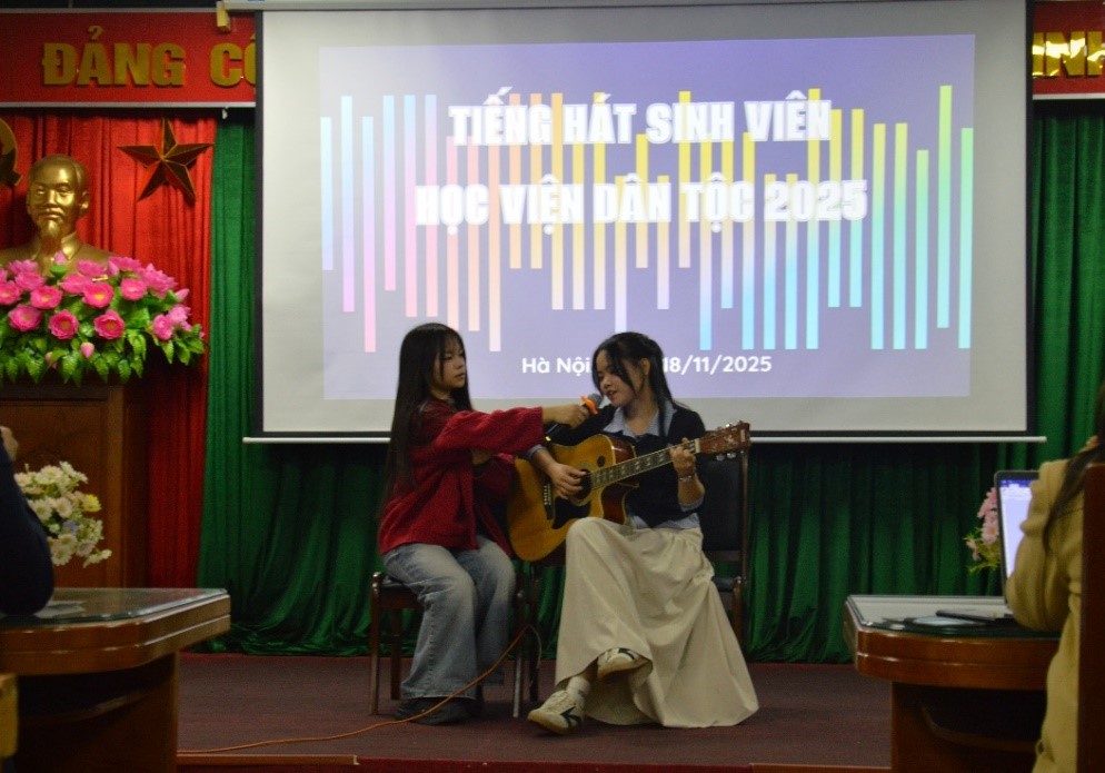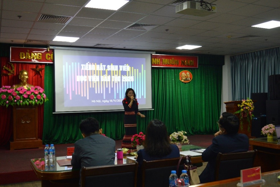 Trong không khí hân hoan hướng tới kỷ niệm ngày Nhà giáo Việt Nam 20/11, Học viện Dân tộc (HVDT) đã tổ chức sự kiện văn hóa nghệ thuật đầy ý nghĩa: Cuộc thi “Tiếng hát sinh viên” năm 2025; sự kiện diễn ra ngày 18/11/2025, tại trụ sở HVDT. Tham dự sự kiện có TS. Phạm Xuân Hoàng, Phó Giám đốc HVDT; Ban Giám khảo cuộc thi là các thầy, cô công tác tại Phòng, Khoa chuyên môn của HVDT; ThS. Nguyễn Hoàng Anh, Phó Bí thư Đoàn Thanh niên Bộ Dân tộc và Tôn giáo; ThS. Mai Đức Hùng, Bí thư Đoàn Thanh niên HVDT, cùng giảng viên, viên chức, người lao động và sinh viên các Khóa đang học tập tại HVDT.